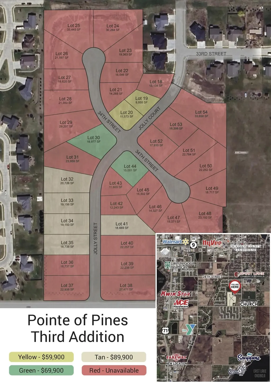 Now is the time to reserve your lot at Pointe of Pines Third Addition! Build to suit options available through developer, or choose your lot and bring the builder of your choice. Select the lot that fits your needs; slab on grade, garden view, or walk out basement. These large lots offer plenty of space to build the home of your dreams with extra yard room and space for a garden shed / detached garage. Plus, a great location near the school, shopping, and all the conveniences Spirit Lake has to offer.