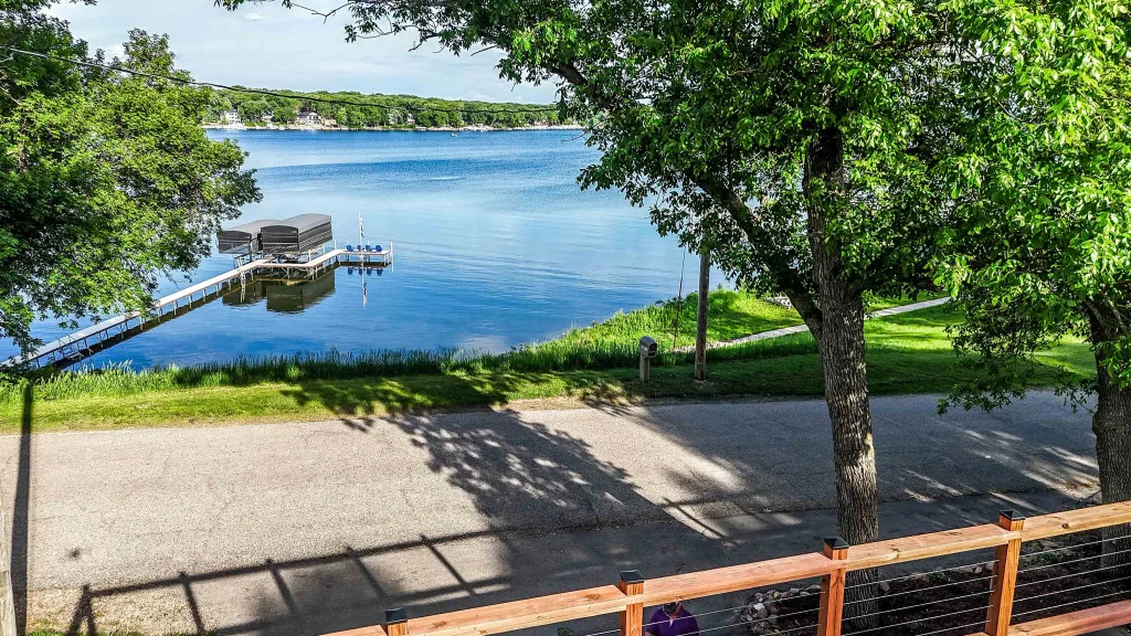 Prepare to be captivated by some of the most stunning views on West Lake Okoboji from this 4-bedroom, 4-bath home in the sought-after Triboji neighborhood. Located on the first tier of the DNR dock management program, you’ll enjoy premier lake and hoist access, just steps away. Inside, the open-concept kitchen, dining, and living areas are designed to showcase those breathtaking lake views. Whether entertaining or relaxing, the Kozy Heat fireplace adds a warm, welcoming touch to the main living space. The primary suite is a true retreat with in-floor heat, a luxurious soaking tub, and a steam shower for ultimate relaxation. A second ensuite bedroom also features its own full bathroom, offering privacy and comfort for guests or family. Two additional bedrooms share another full bath, and all bathrooms are finished with sleek porcelain tile showers for a clean, modern feel. Downstairs, you’ll find a shop area and hydronic heated floors throughout the basement, providing year-round warmth and comfort. The oversized garage features three full vehicle stalls plus a dedicated fourth stall—perfect for a golf cart, side-by-side, or additional lake toys. A spacious bonus area behind the garage offers even more room for a workshop, studio, or extra storage. Outside, the home is finished with authentic stone accents and features a porcelain paver patio, ideal for relaxing or entertaining while soaking in the unbeatable views. This home combines comfort, craftsmanship, and one of the best views of West Lake. Don’t miss your opportunity to make it yours. NOTE: The 4th bathroom is unfinished.