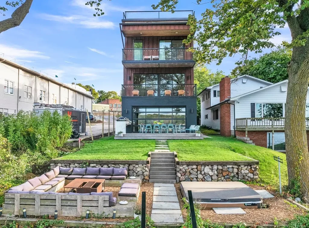 Architecturally stunning home on West Lake Okoboji! This modern masterpiece offers three full stories above grade with 4 bedrooms and 4 full bathrooms. Located on quiet Park Place Avenue, it’s just steps from all the excitement of downtown Arnolds Park and the amusement park. Enjoy spectacular lake views from the floor-to-ceiling windows on every level. The over 1,000-square-foot rooftop deck provides ultimate privacy, while the family room features a retractable glass wall that transforms the space into the perfect screened-in porch. Additional highlights include in-floor heating, a built-in bar, a chef’s kitchen, Corten steel siding, and so much more! This home is a quality build by Steffes Construction and is designed to be the place where your family will gather and create memories at Okoboji for generations to come!