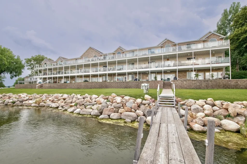 Top-floor, condo at Spyglass on Upper Gar Lake, just in time for summer. This meticulously remodeled 3-bedroom, 2-bath unit features an updated kitchen and baths, including a custom tile shower, and an open living area enhanced by vaulted ceilings that bring in natural light and a sense of space. Step out onto your private deck and take in lake views, then head down to your hoist spot for an easy day on the water. Additional highlights include a double-car garage, elevator access, and a shared pool. Located in the heart of Arnolds Park, you’re just steps from restaurants, shopping, and everything the Iowa Great Lakes lifestyle has to offer.
